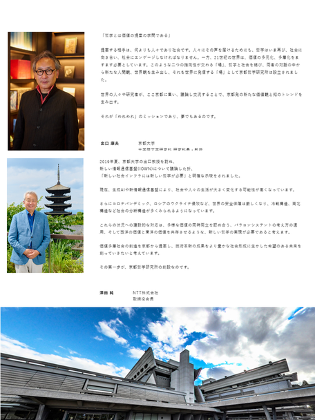 ●NTT会長 澤田純氏さんは、これからの時代を作る通信の常識を根底から変えるIOWN(アイオン)開発。そして新たなSNS AIの世界への警鐘を鳴らす京都哲学研究所の活動までを語ります。