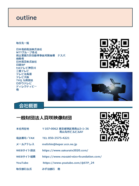制作スタッフ カメラ/近藤香緒里プロデューサー・キャスター/詩麻絢子 制作著作 一般財団法人真咲映像財団